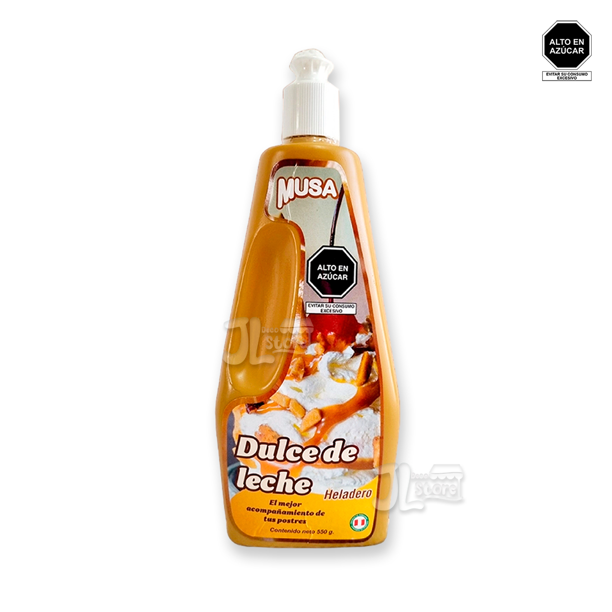 Dulce de Leche Heladero 550gr Musa – Ideal para acompañarlo con helados y dar un acabo profesional a los postres: cafes, frappes, milkshakes, etc. Sin perder el sabor característico del dulce de leche.