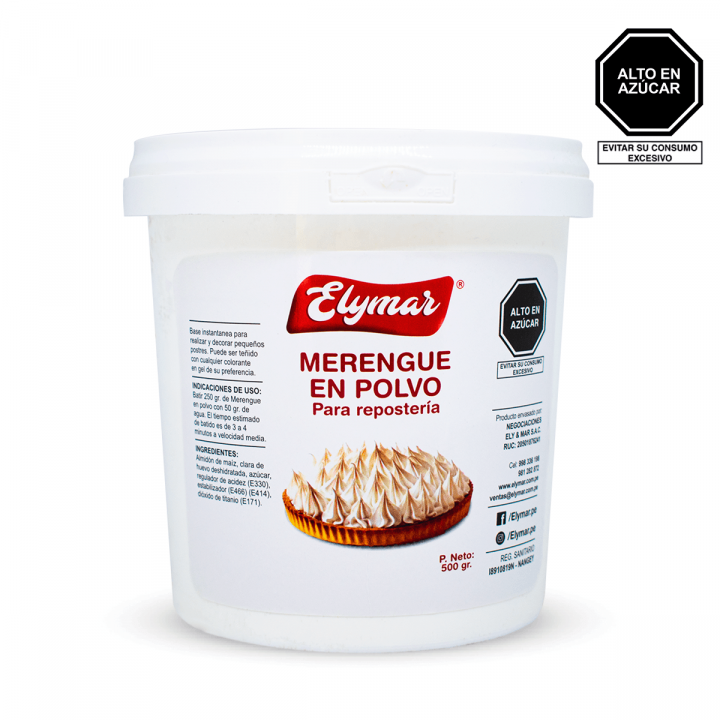 Merengue en Polvo Elymar 500g. Úsalo para buttercream, glaseados y merengues.